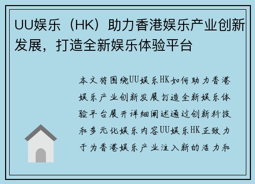 本文将围绕UU娱乐(HK)如何助力香港娱乐产业创新发展,打造全新娱乐体验平台展开详细阐述。通过创新科技和多元化娱乐内容,UU娱乐(HK)正致力于为香港娱乐产业注入新的活力和创意,推动行业的发展和转型。文章将从四个方面进行分析:一是UU娱乐(HK)如何推动内容创作与创新,二是如何借助数字化转型提升娱乐体验,三是如何实现跨界合作拓展产业边界,四是如何以用户为中心打造全新娱乐平台。通过这些方面的深入探讨,旨在展示UU娱乐(HK)在香港娱乐产业中的重要地位及其未来发展前景。